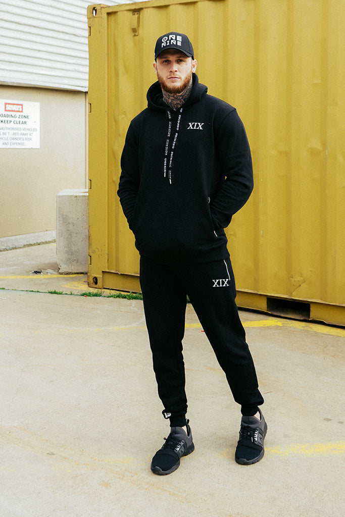 Featuring the "XIX Track Hoodie " available in Black, Beige & Grey. The signature track hoodie is well worth having, featuring the "ONE NINE" detail logo, regular fit, ribbed hemline, side pockets exposed zipper, and hoodie ties with one nine logo.